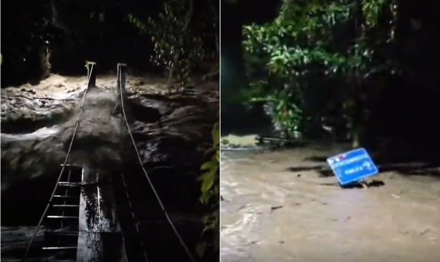 Forte chuva no Sana, região serrana de Macaé, destrói ponte pela força da água Foto: Reprodução / Redes sociais
